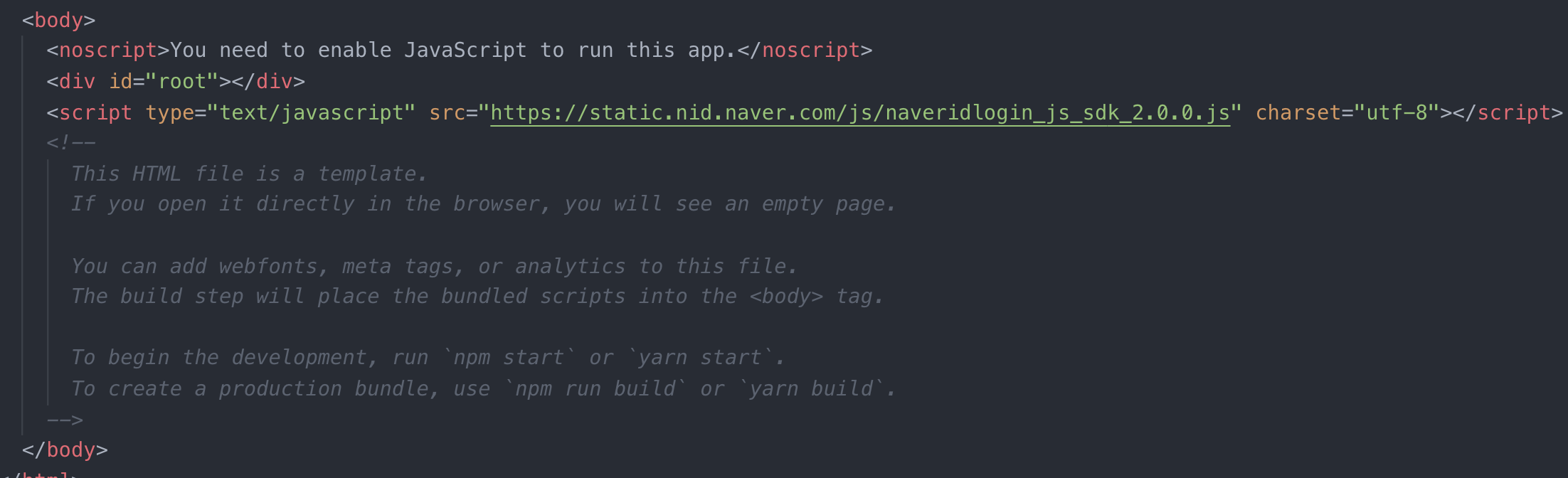 3. public 폴더 안에 있는 index.html에 script를 추가해준다.