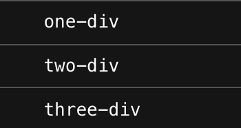 여기서 최하위 div 태그 <div class="three-div"></div>를 클릭하면 아래와 같은 결과가 나온다.