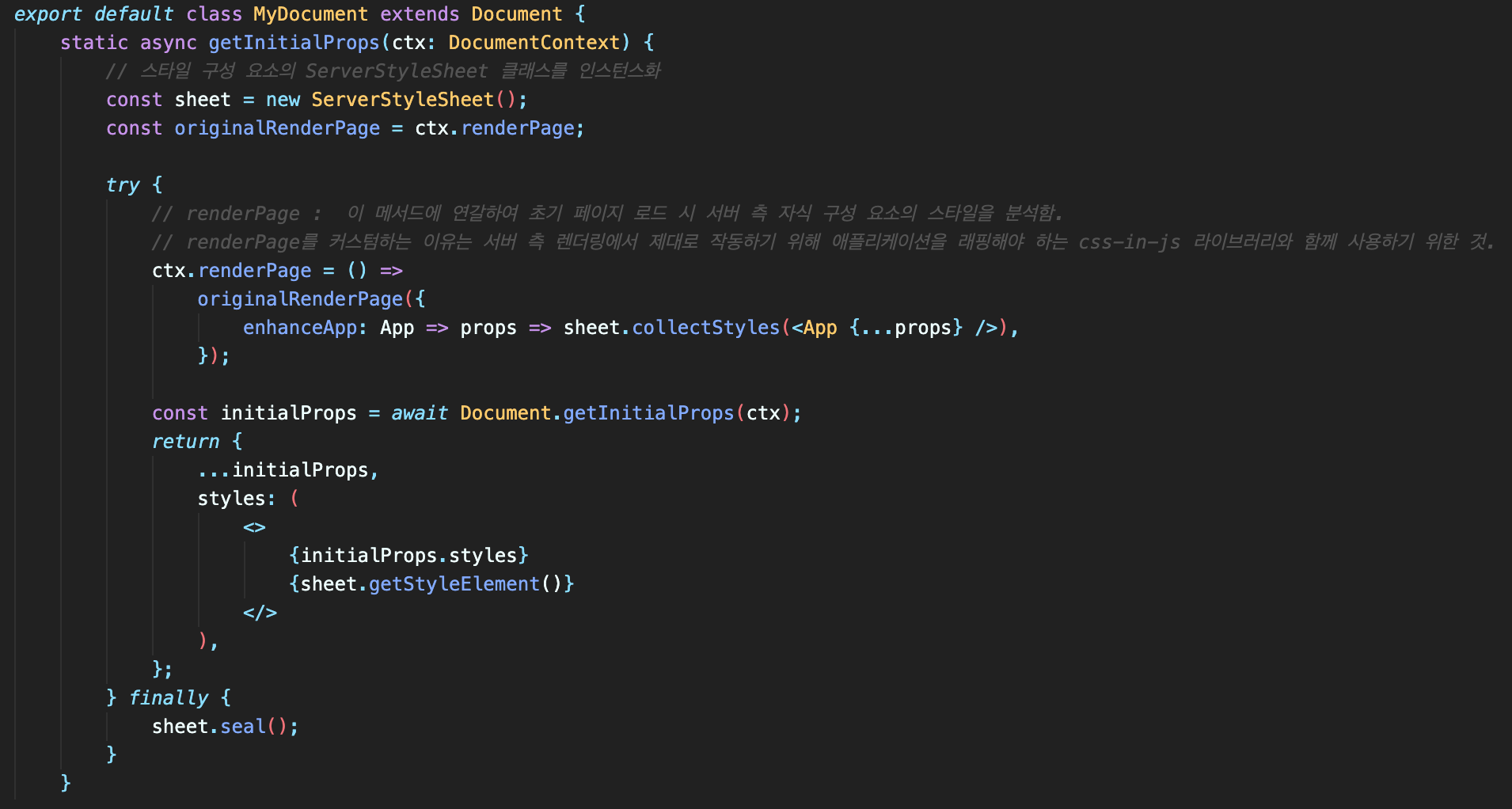 pages/_document.tsx ◎ 많은 삽질과 구글링을 통해 적용했는데 혹시나 틀린 부분이 있으면 댓글 부탁드립니다.
