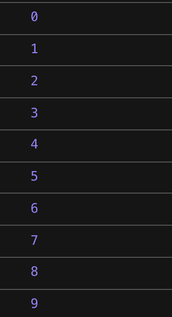 문법을 활용하여 0부터 9까지 나타내는 for문을 작성해보자.