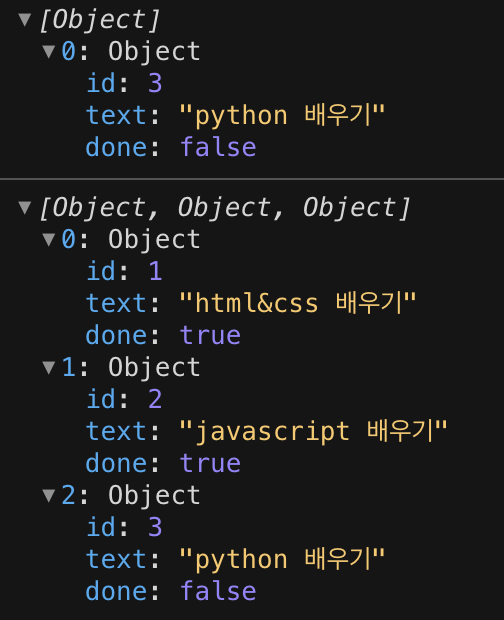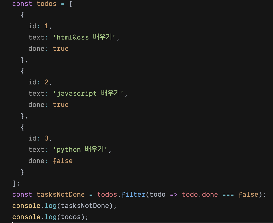 filter ◎ console을 확인해 보면 기존의 todos 배열은 변경되지 않은 것을 확인할 수 있다.