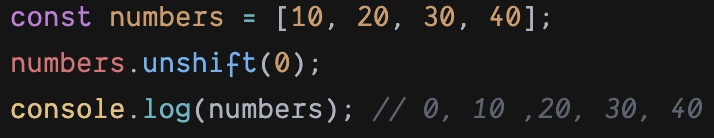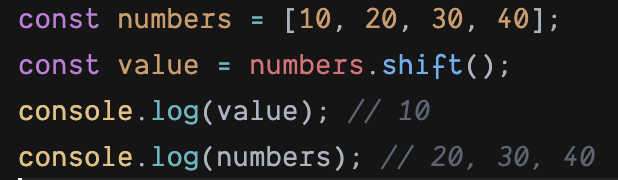배열의 제일 앞 인덱스를 삭제하거나 추가할 때, 배열의 제일 뒤에 있는 인덱스를 삭제하거나 추가할 때 사용하는 내장 함수.