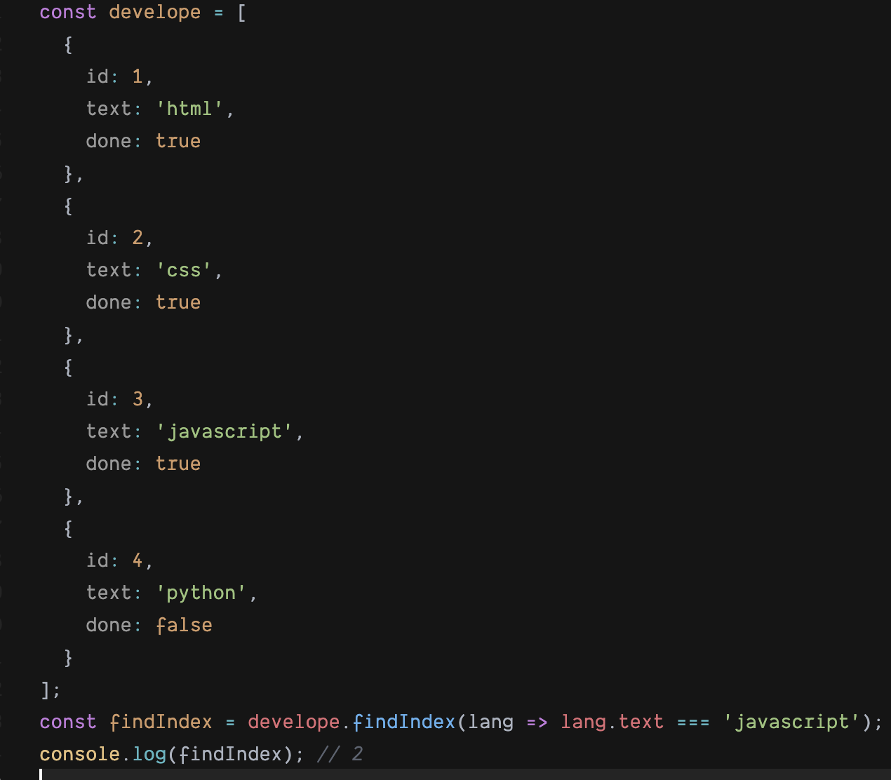 파라미터는 함수 특정 조건을 확인해서 일치한다면 일치하는 원소가 몇 번째 인지 확인하는 내장 함수.