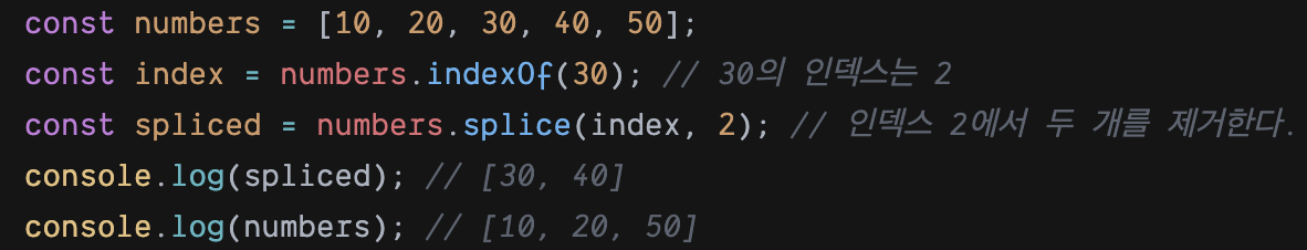 splice와 같이 특정 항목을 제거할 때 사용하는 내장 함수.