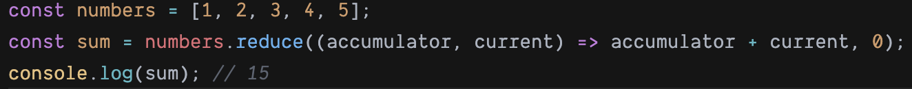 첫번 째 파라미터는 누적된 값을 계산하는 함수를 넣어야 한다.(두 가지의 파라미터를 받아온다.)