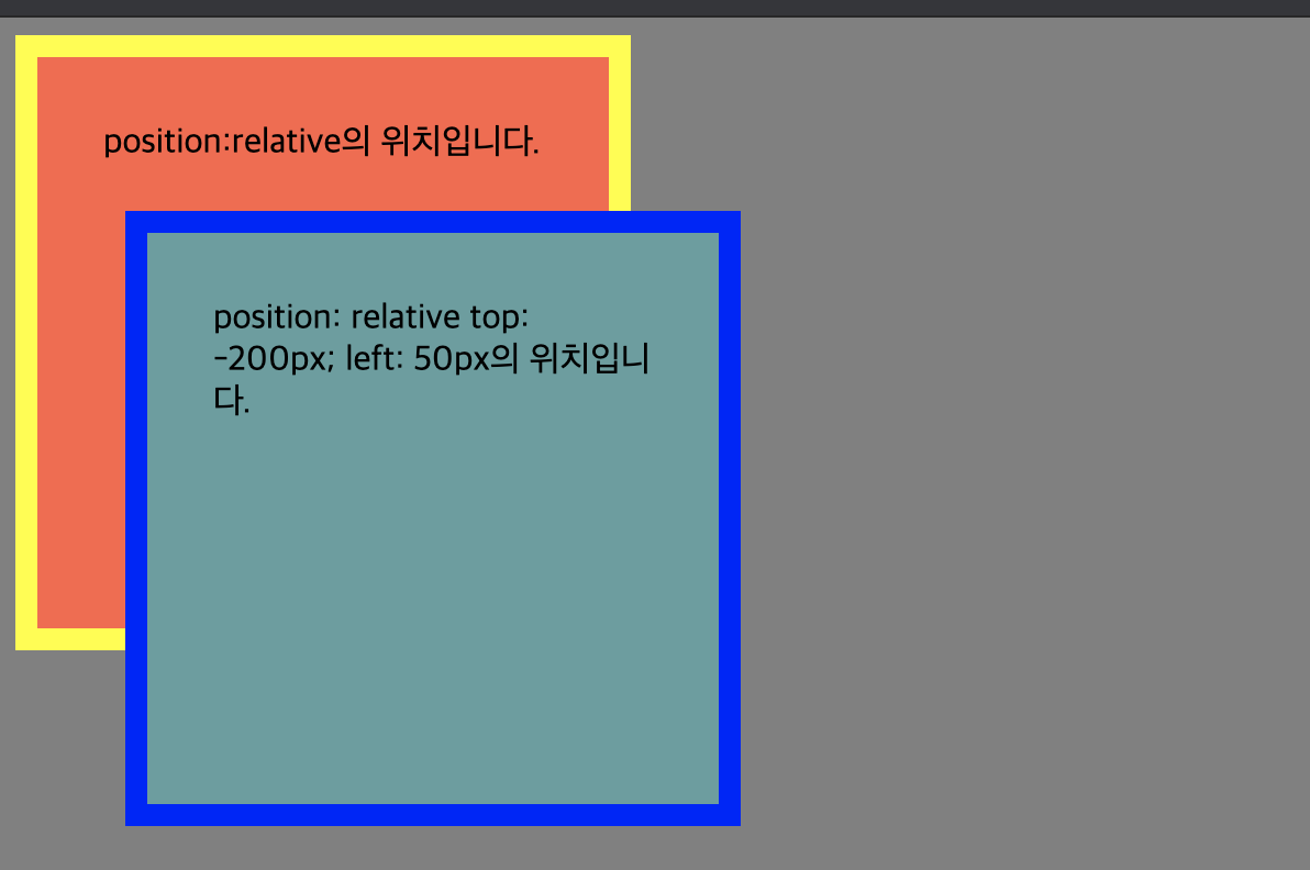 browser 위의 화면을 보면 프로퍼티를 지정하지 않은 relative 위치의 기준에서 프로퍼티를 지정해준 relative의 위치가 결정된다.