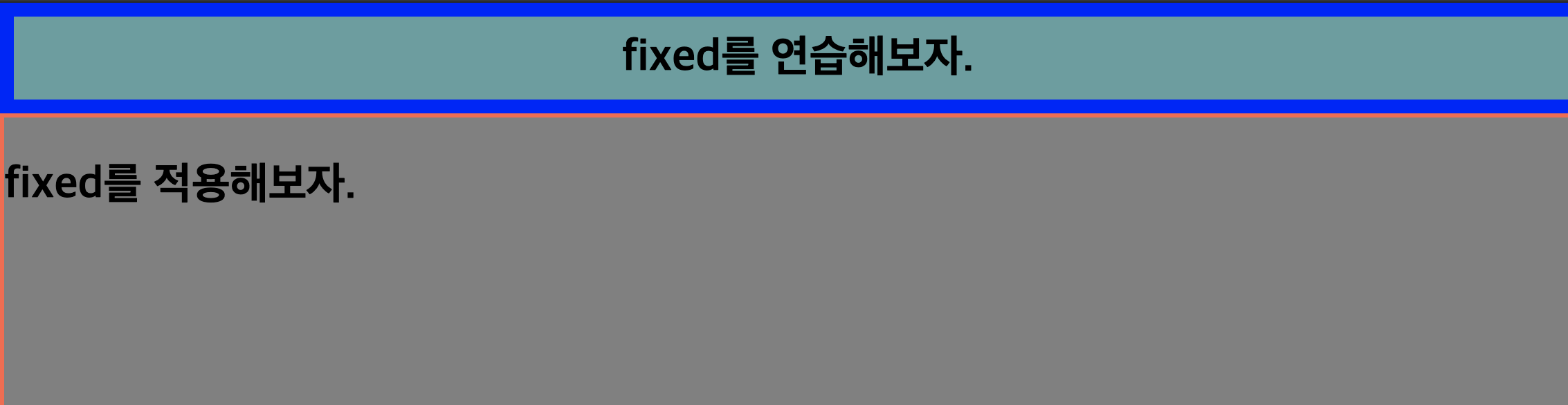 ● fixed는 뷰포트에 상대적으로 위치가 지정되는데, 이 뜻은 스크롤이 되더라도 항상 같은 곳에 위치한다는 뜻이다.