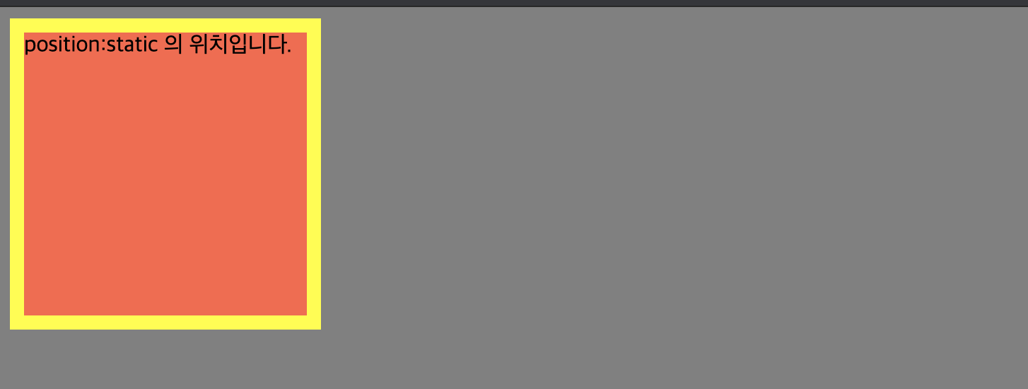 ◎ static은 기본값을 의미합니다. position:static; 이 설정된 엘리먼트는 특별한 방식으로 위치가 지정된 것은 아니다.