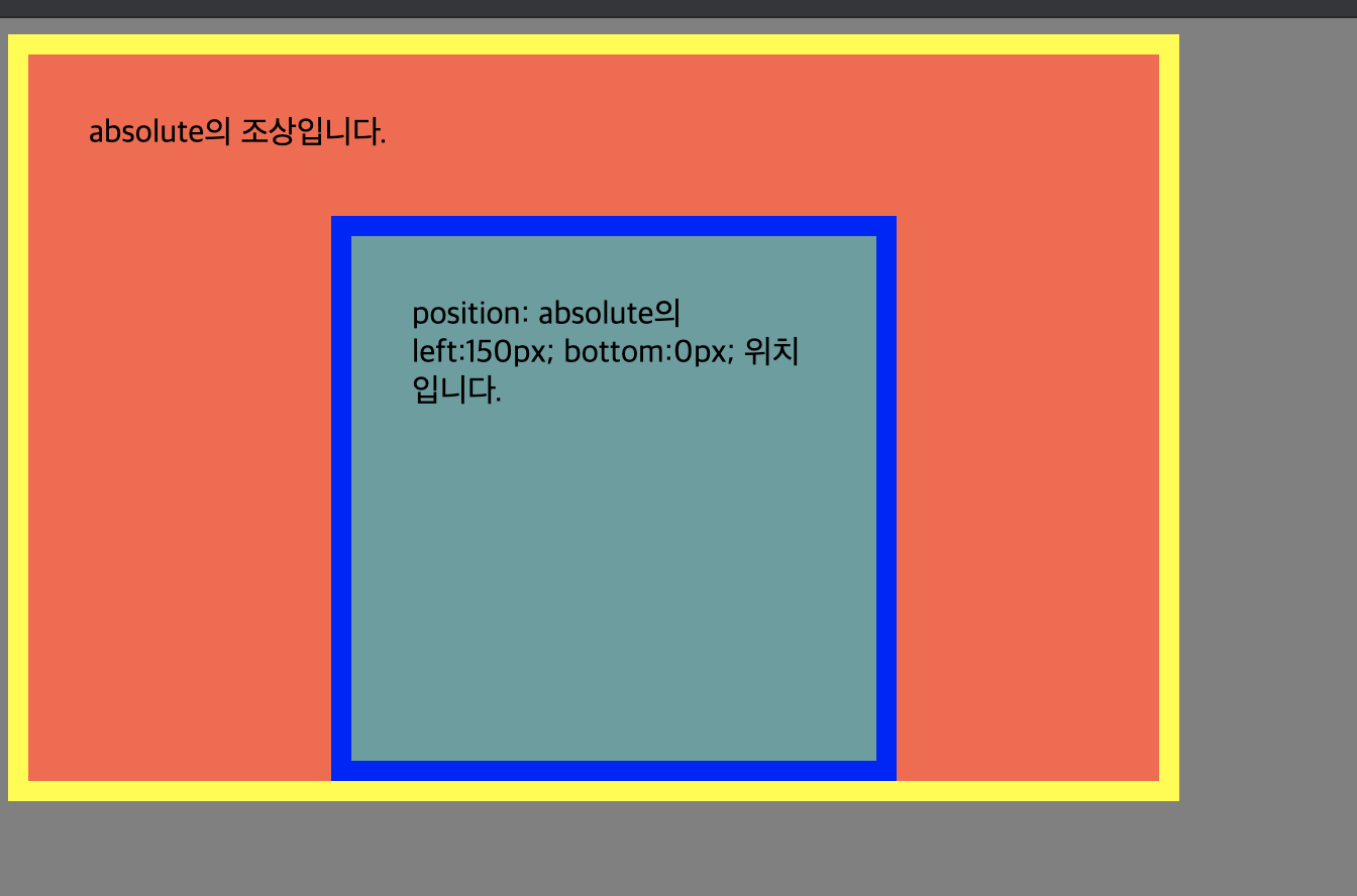 browser 위의 화면을 보면 absolute는 조상의 위치를 기준으로 프로퍼티가 적용이 된다.