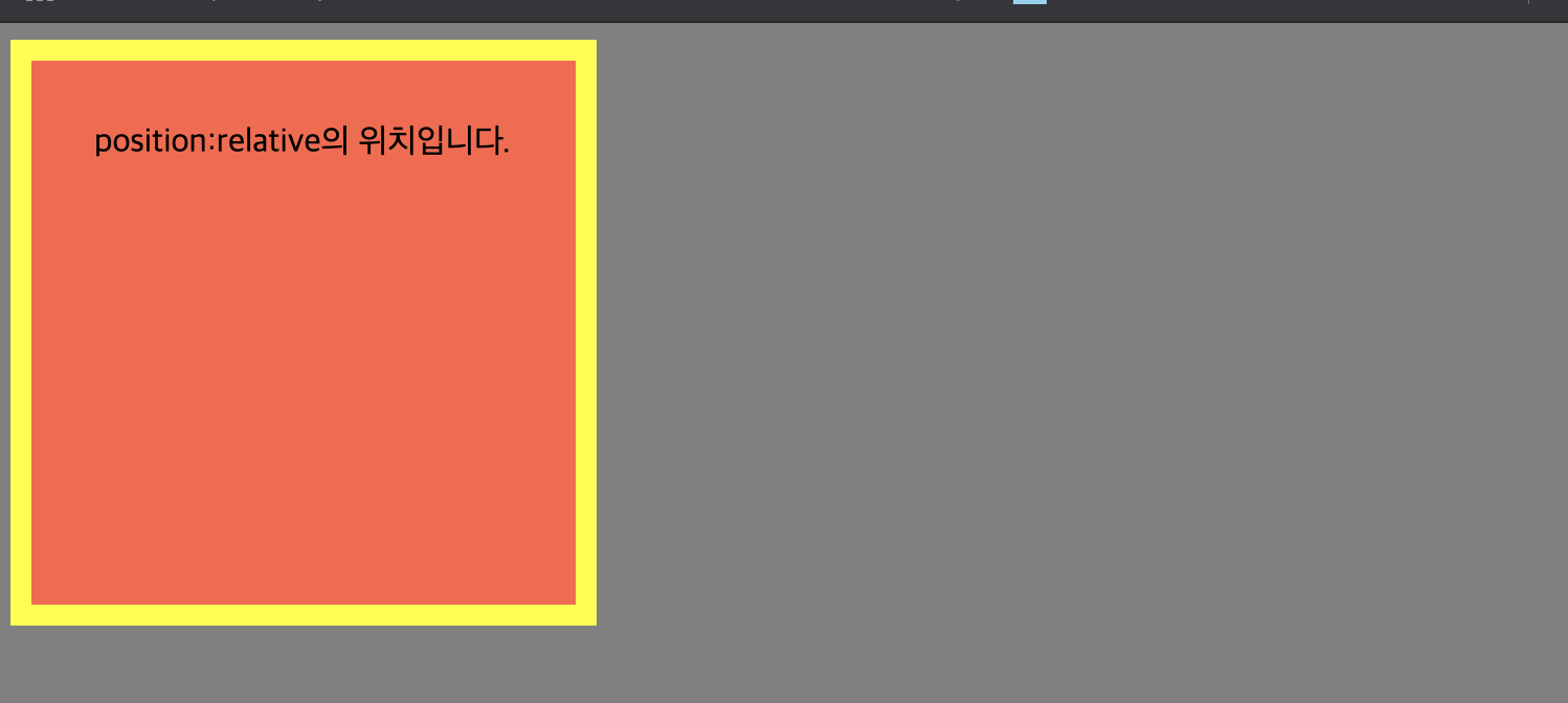 browser 위의 화면을 보면 프로퍼티를 지정하지 않은 relative 위치의 기준에서 프로퍼티를 지정해준 relative의 위치가 결정된다.