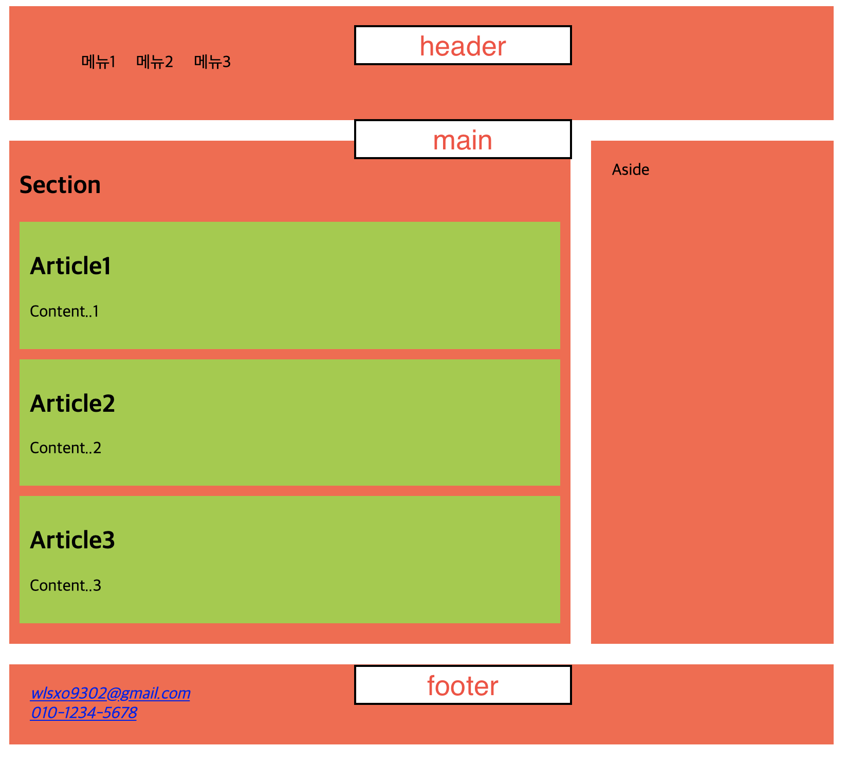 - footer는 회사 주소, 이메일, 연락처 등을 기입할 때 사용한다.