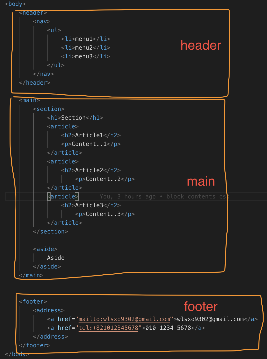 <article>, <aside>, <header>, <nav>, <main>, <section>, <footer>3. 시멘틱 태그(Semantic Tag) 사용 예시