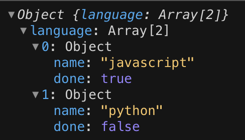 console에 objData을 확인해보면 language는 array로 되어있는 걸 확인할 수 있다.