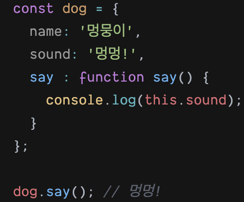 ◎ 객체 안에 함수도 넣을 수 있다. 다음 코드를 봐보자