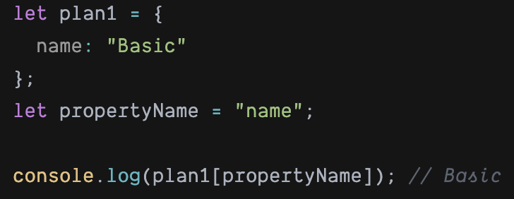 위의 코드처럼 plan1 객체의 name이라는 프로퍼티에 접근하고 싶을 때, 위와 같이 사용하면 된다.