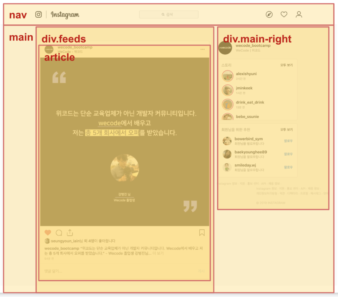 westagram main layout 레이아웃만 구성한 화면이다. 이제 css를 입혀보자.