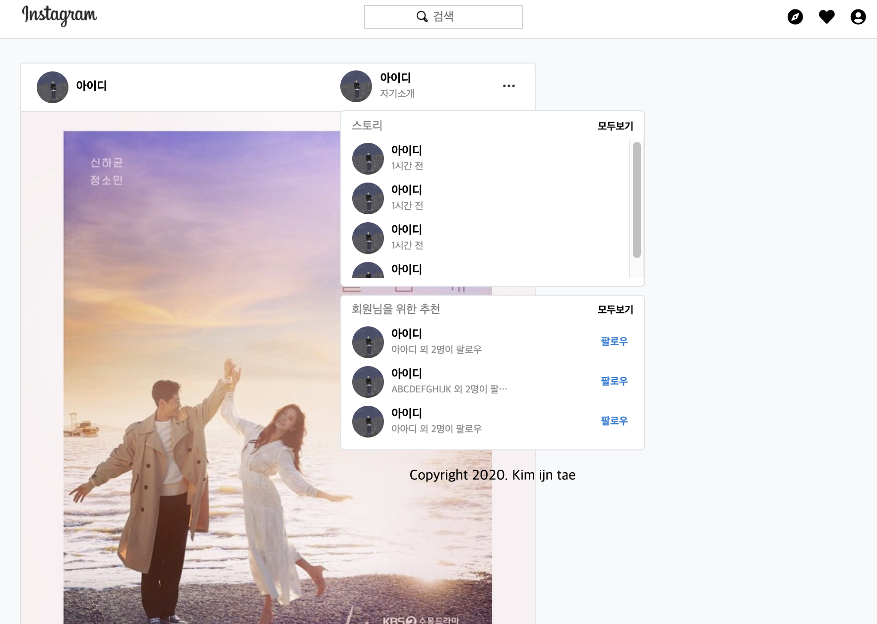 특히 우측 스토리와 팔로우 영역은 공통적으로 사용하는 css가 많아 클래스를 동일하게 주고 재사용하였다.