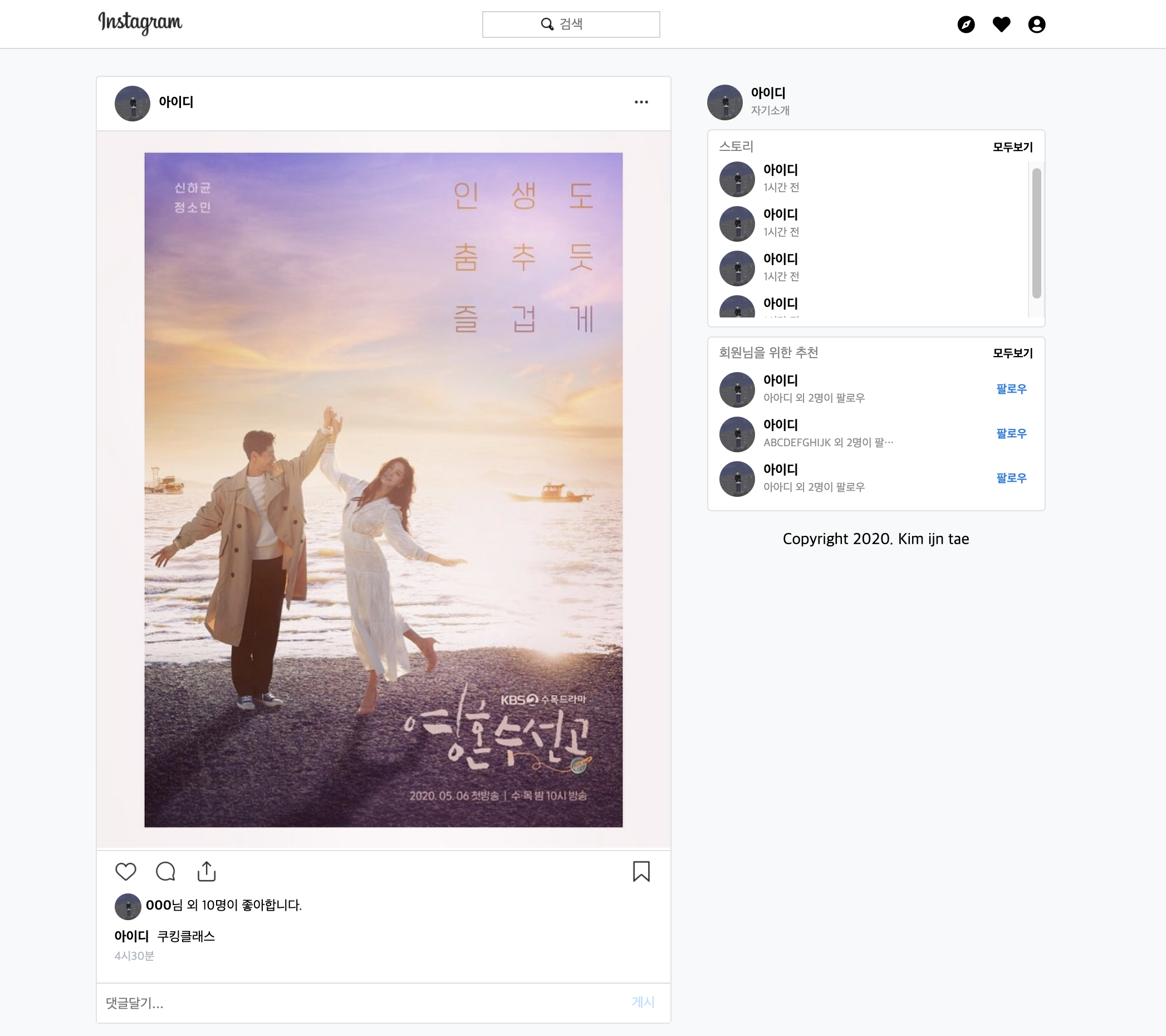 [Assignment] 위스타그램 코딩 Chapter 2. main pageDevelope/Assignment 2020. 5. 2. 15:32