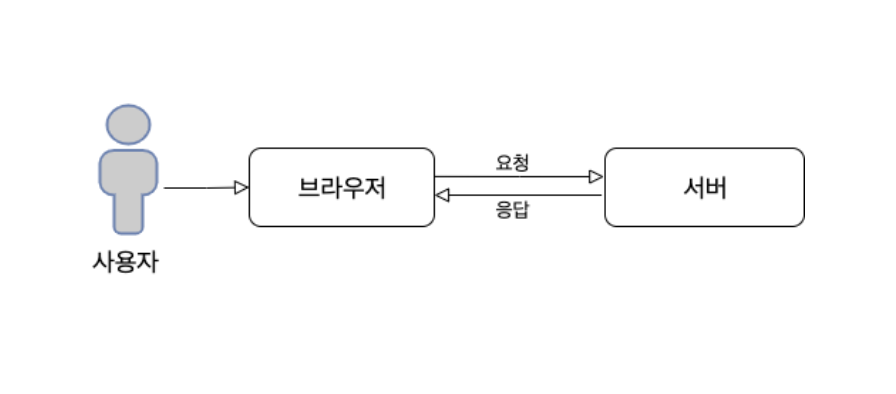 - 사용자 -> 브라우저 ->(요청) -> 서버 -> (응답) -> 브라우저