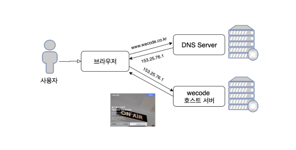 브라우저는 DNS 서버로 가서 웹사이트가 있는 서버의 진짜 주소를 찾는다.