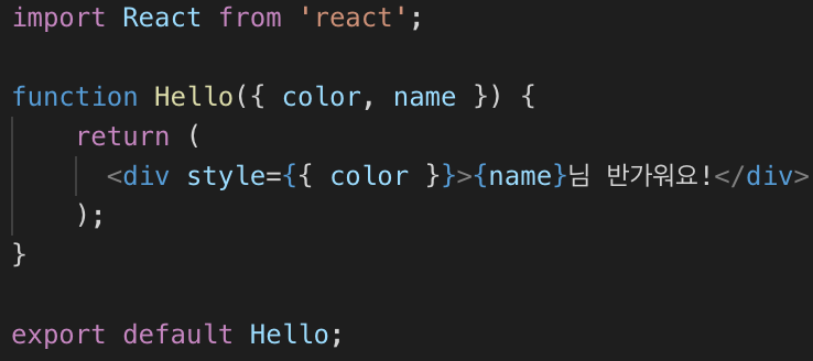 Hello.js props 내부의 값을 조회할 때마다 props. 을 입력하고 있는데, 함수의 파라미터에서 비구조화 할당(혹은 구조 분해) 문법을 사용하면 조금 더 코드를 간결하게 작성할 수 있다.