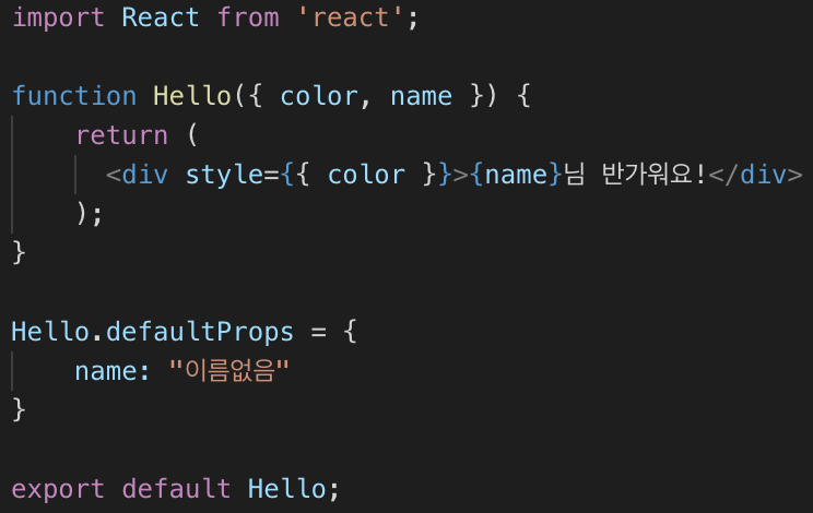 컴포넌트명.defaultProps = { 프러퍼티명 : 값 };다음 코드를 봐보자.
