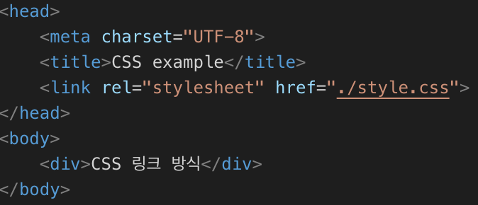 HTML 문서에 <link> 태그를 이용하여 외부 문서로 CSS를 불러와서 작성하는 방식