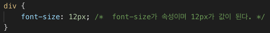 선택자 { 속성: 속성값; 속성: 속성값; }선택자 { 속성: 속성값; 속성: 속성값; }위의 두가지 방법의 문법이 있다.