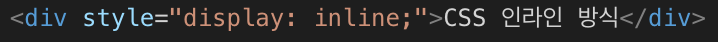 HTML요소의 style 속성에 직접 장석하는 방식.