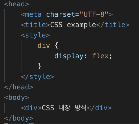 HTML 문서에 <style> 태그를 작성하는 방식.