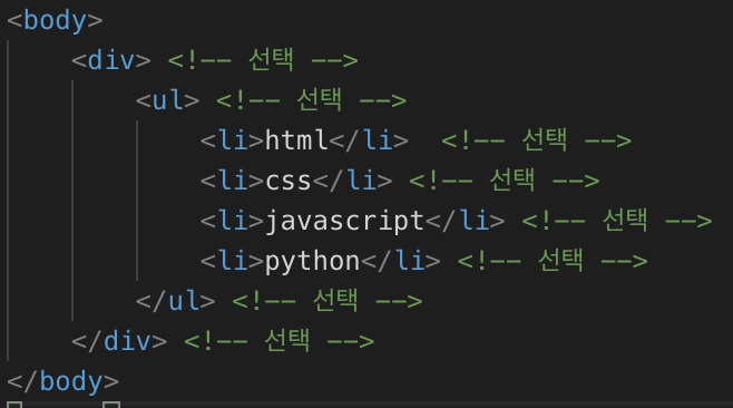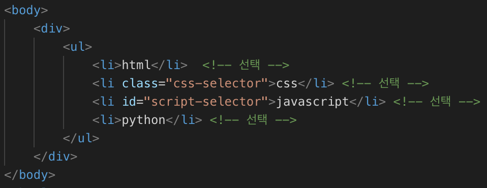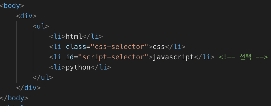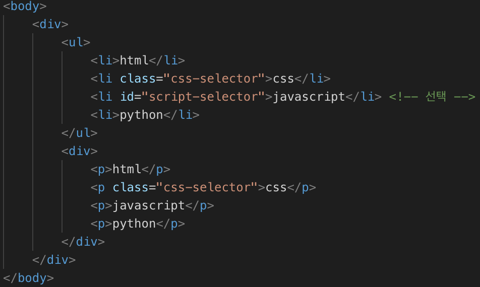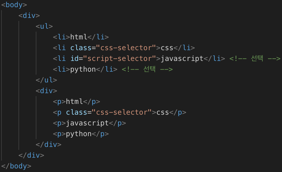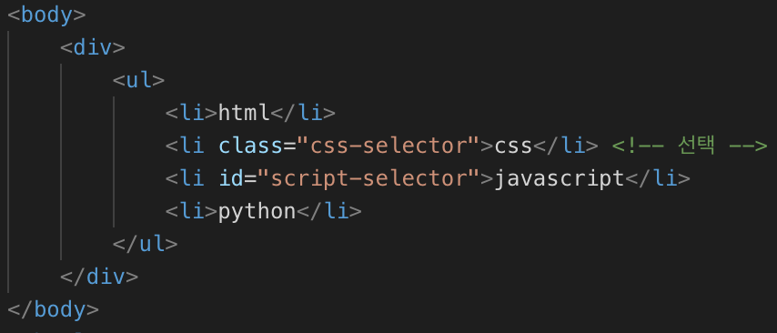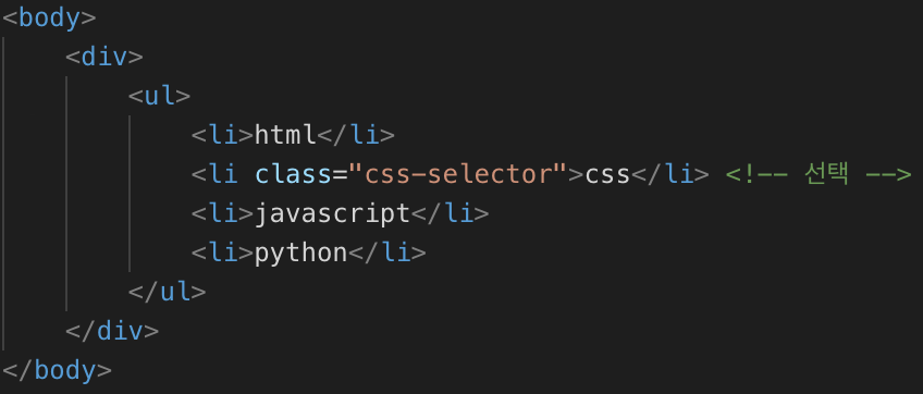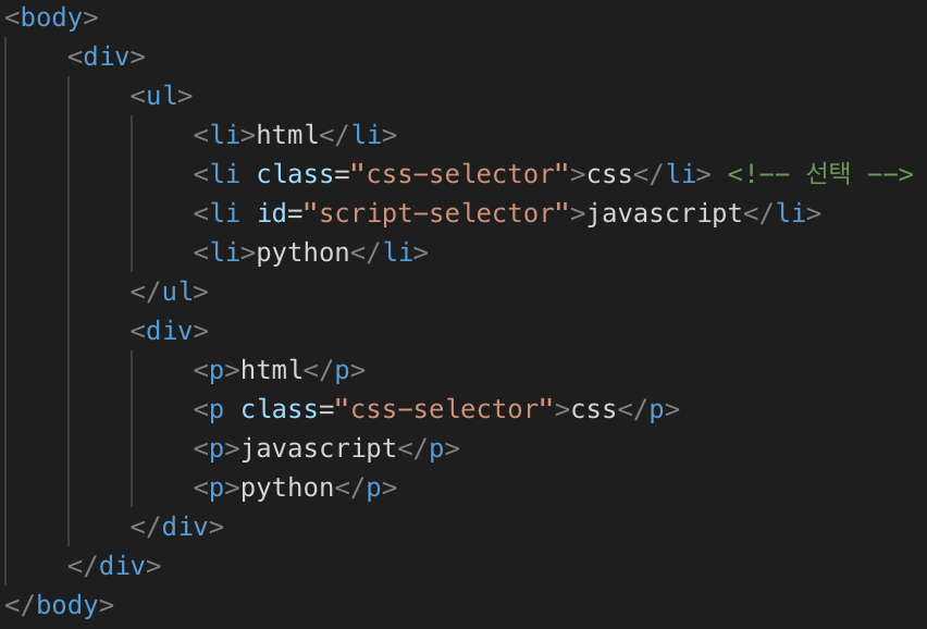 ◎ 속성과 값을 지정할 대상을 검색하여 html에서 원하는 태그를 찾아주는 역할.