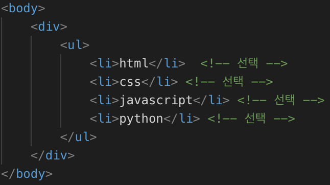 일치 선택자 html 4-2. 자식 선택자(Child Combinator)