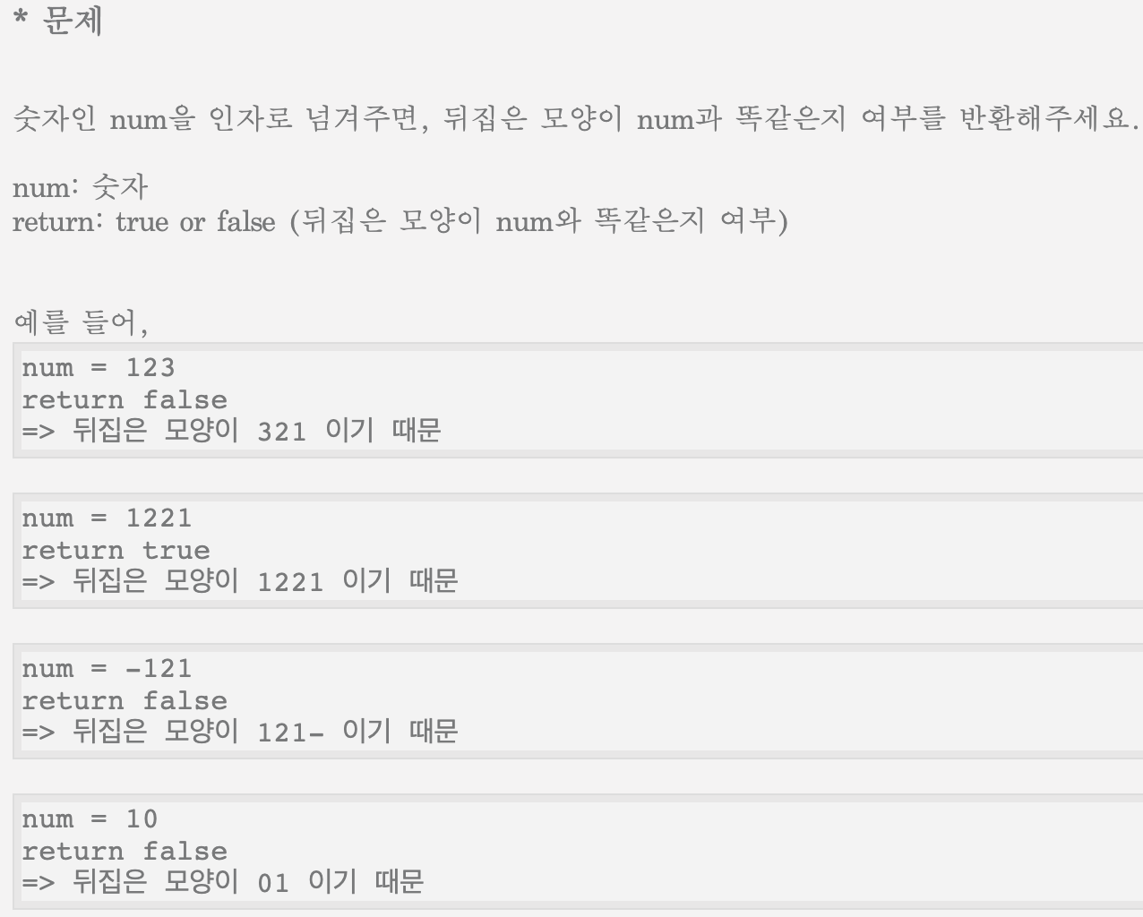 const sameReverse = num => { let strings = num.toString().split("").reverse().join(''); strings = Number(strings); let result; if(num === strings) { result = true; }else { result = false; } return result; } sameReverse(2);