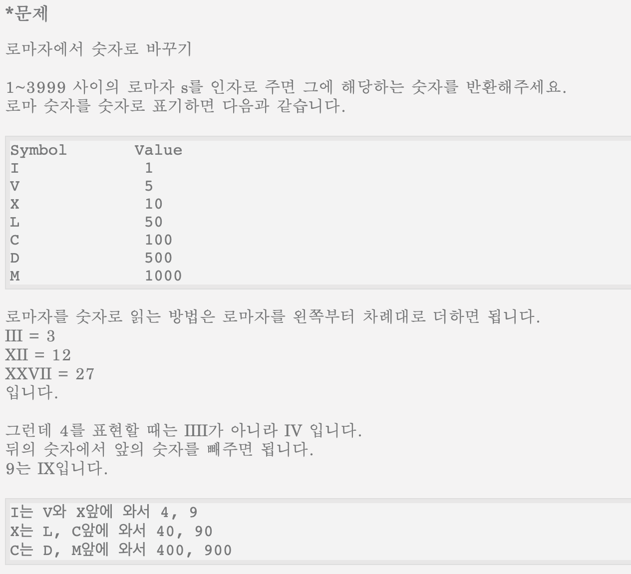function romanToNum(s) { const numObj = { "I" : 1, "V" : 5, "X" : 10, "L" : 50, "C" : 100, "D" : 500, "M" : 1000 } let result = 0; console.log(numObj["X"]); for(let i = 0; i < s.length; i++) { console.log('i+1: ', numObj[s[i+1]]); if(numObj[s[i]] < numObj[s[i+1]]) { result = result - numObj[s[i]]; } else { result = result + numObj[s[i]]; } } return result; // 12 } romanToNum('XII');'Develope > Algorithm' 카테고리의 다른 글