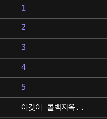 간단히 숫자 n을 파라미터로 받아서 5번에 거쳐서 1초마다 1씩 더해서 구현하는 콜백 함수 코드를 봐보자.