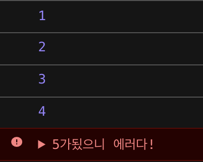 추가로 증가된 숫자가 5 되면 에러 메시지가 나오게 해 보자.