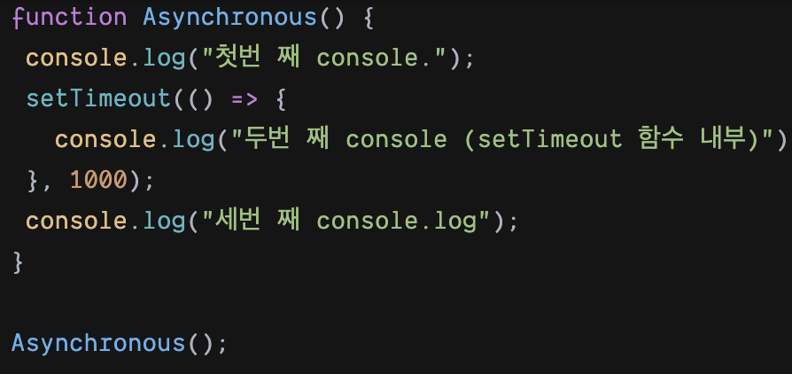 setTimeout() 함수가 대표적인 비동기 함수이다.